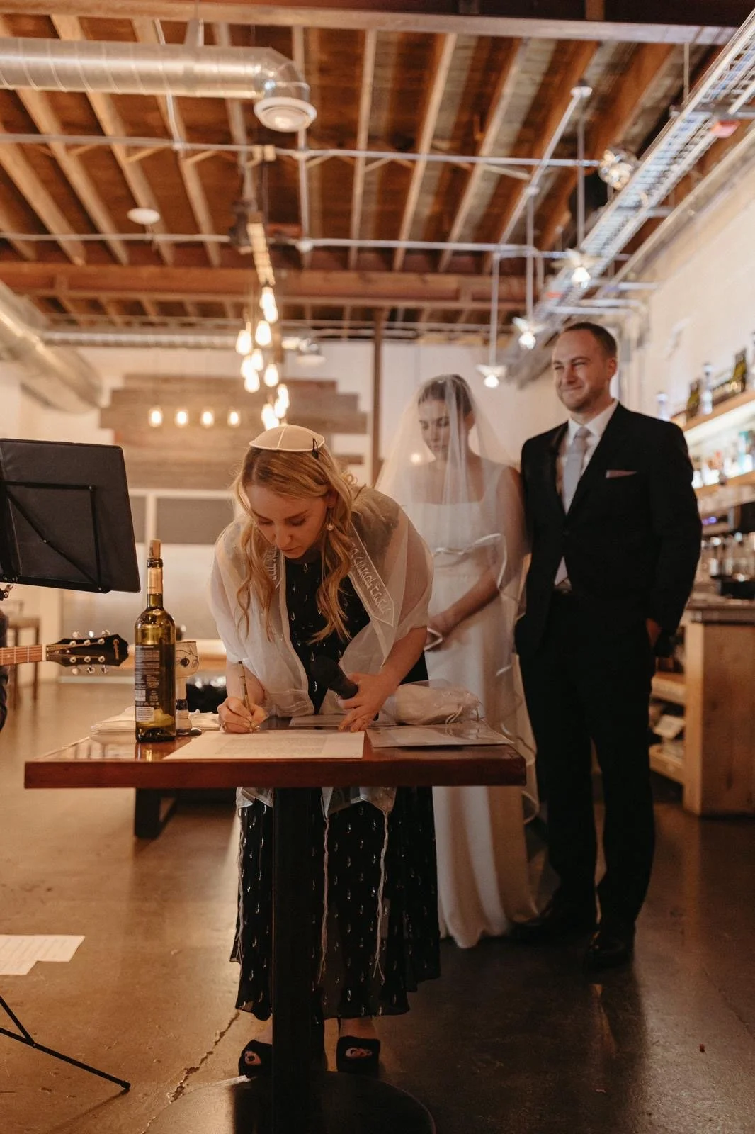 To ensure the ceremony reflects the unique values of each couple, I meet with them 2-3 times beforehand. This time allows us to get to know each other and to thoughtfully design a ceremony that feels authentic and meaningful. For couples from traditional Jewish backgrounds, I introduce inclusive, egalitarian options they may not have encountered before. For those from secular backgrounds, I offer a glimpse into the rich beauty of historic Jewish customs. Together, we create a ceremony that celebrates the Jewish future they are building together.